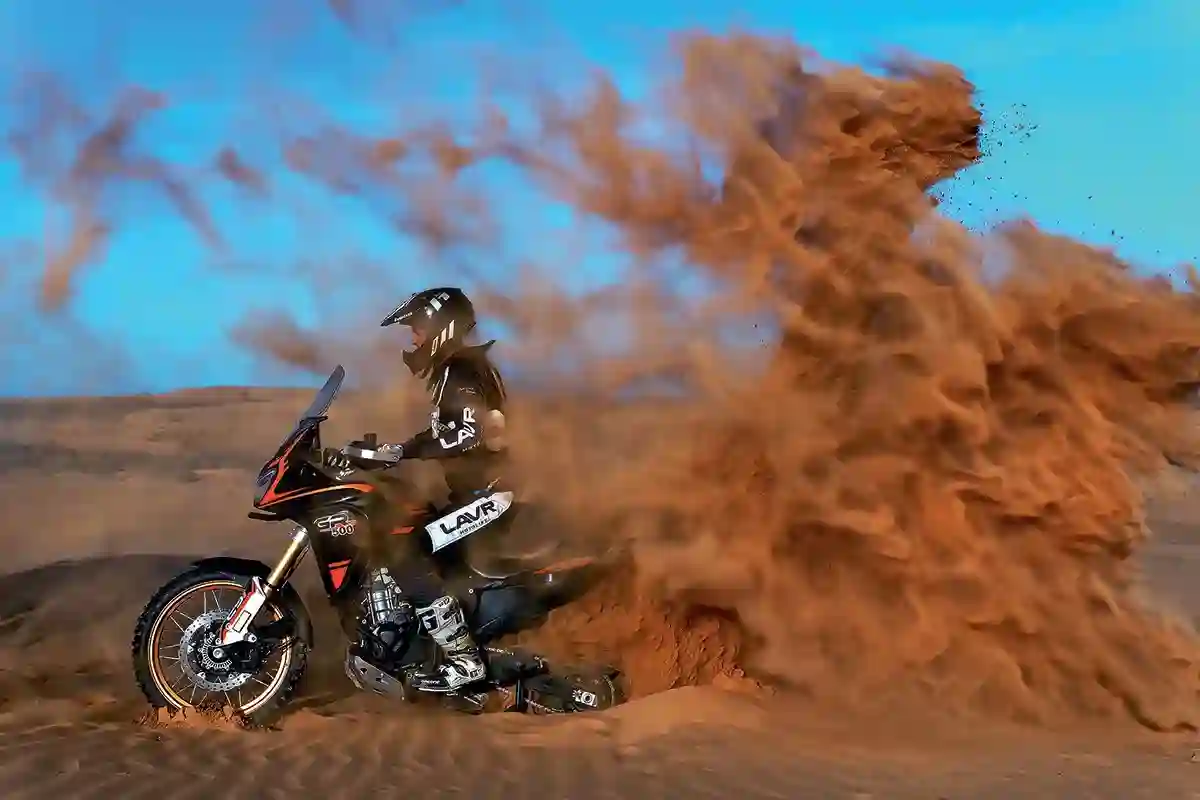 Пятисоткубовый GR 500 21/18, на которых заявилась в гонку команда «Роллинг Мото», — один из флагманов туристической линейки GR, сделан по классической схеме и внешне похож на знаменитую хондовскую «Африку». В стальной раме установлен двухцилиндровый 4‑тактный двигатель Loncin с жидкостным охлаждением и инжектором от Bosch. Надежный, неприхотливый и хорошо известный движок «срисованный» с Honda CB 500X, работает в паре с 6‑ступенчатой МКП. Cпереди стоит телескопическая вилка-перевертыш SZC Pro с диаметром пера 41 мм и ходом 200 мм. Вилка оснащена регулировками сжатия (40 щелчков) и отбоя (32 щелчка). Сзади установлен моноамортизатор SZC с ходом 150 мм, регулировкой сжатия (32 щелчка) и отбоя (28 щелчков). Прочные спицованные колеса диаметром 21 дюйм спереди и 18 дюймов сзади специально для гонки обули в покрышки Borilli 7 Days Rally. Тормоза с отключаемой ABS, что важно на бездорожье, cпереди два диска диаметром 298 мм с 4‑поршневыми суппортами, сзади один диск диаметром 240 мм и 2‑поршневой суппорт — этого вполне достаточно, чтобы остановить байк снаряженным весом 190 кг в любой ситуации.