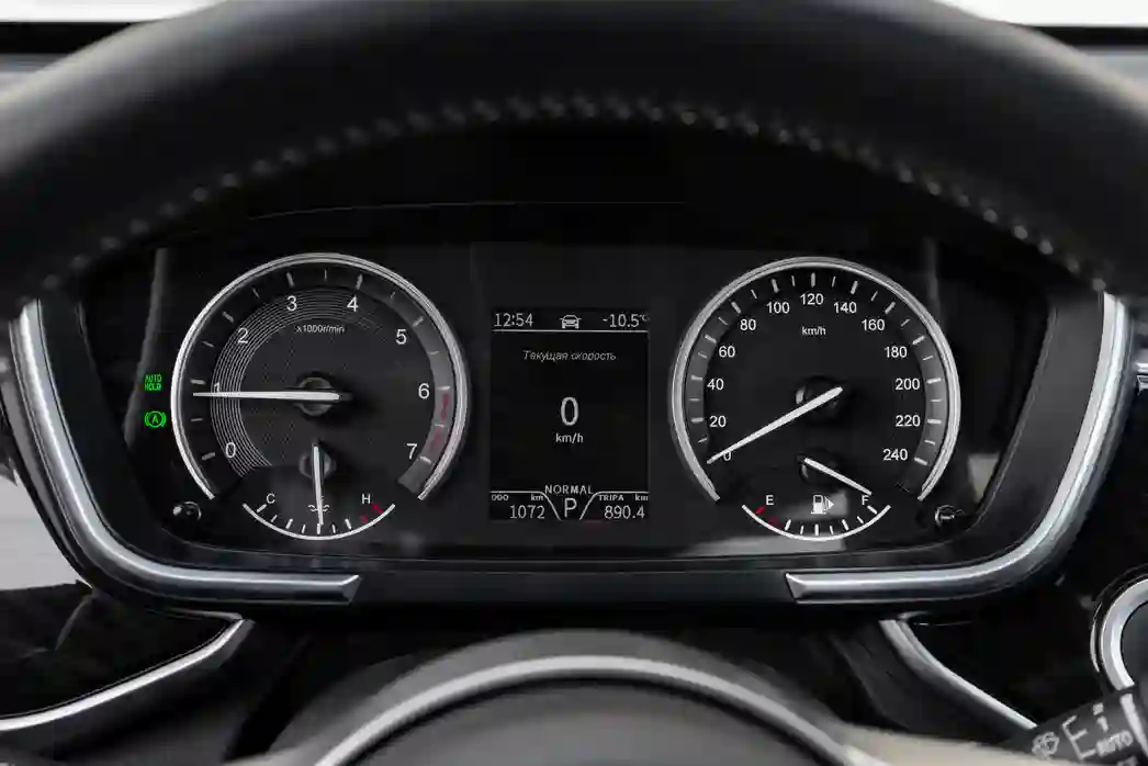 Здесь аналоговая приборная панель — с хорошо читаемыми шкалами. На привычных для водителя местах находятся физические кнопки управления, а выстроить климат можно на собственной, пусть и сенсорной, панели, отдельной от 10,25-дюймового тачскрина мультимедиасистемы.